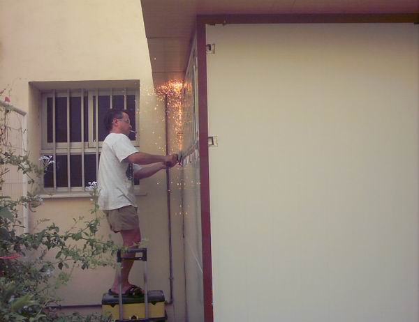 Bueno pues para poder tener acuarios me tuve que hacer un cuarto fuera en la terraza. He encontrado algunas fotos de cuando hice la caseta para los discos. El armazon esta hecho con angulo de 4x4 y pintado con minio rojo Aqui se puede ver el esqueleto con las ventanas y el techo puesto Por dentro, el armazon del techo Un detalle de la cristalera de paves.... Aqui ya se podian ver algunos paneles puestos en las paredes El techo ensamblado con tornillos que llevan arandela de goma Un lateral con los paneles puestos Todo siliconado perfectamente, use unos 30-35 tubos Aqui teneis a mi hermano que se lo curro un mazo y sin el y ocasionalmente algunos amigos, no podria haber hecho el cuarto.........GRACIAS !!!! Y este soy yo tirando de radial tambien Aqui ya estaba poniendo el suelo, es lo que mas me costo porque tuve que echar pasta hasta ponerlo a nivel y asi poder pegar los azulejos bien con cemento cola..... la espalda no la notaba !!! Ahi lo tienen al chaval currandose el suelo ... y tal .... jejjjajaja Como va todo ?.....