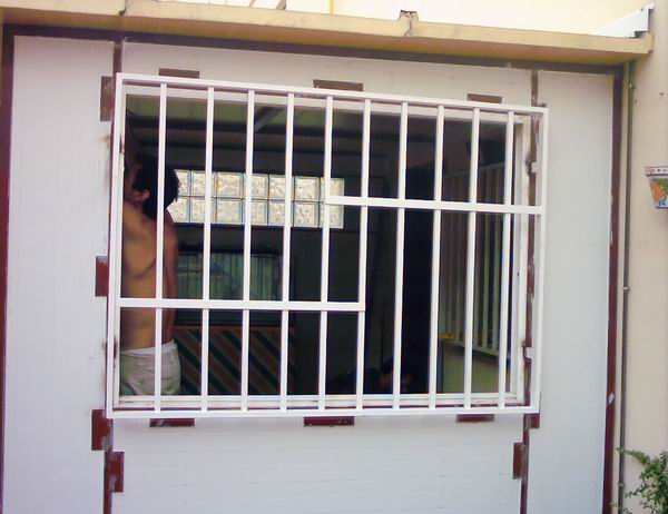 Ahora despues de cortar literalmente la pared con una radial, iba repelando poco a poco el ladrillo para no destrozar mucho por dentro Y aqui el momento de romper la fina capa de yeso y pintura que quedo.... En esta foto terminabamos de poner la reja soldada al armazon. Otra con las dos rejas puestas