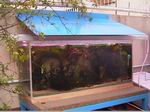 Hola pues despues de casi dos meses entre el ciclado y el montaje del acuario, aqui esta por fin el "criadero" de gambas . Empecemos con el montaje de la instalacion , mesa y demas. Estos son los calzos para nivelar el acuario, pues la terraza tiene caida para llevar las aguas al sumidero. La mesa y el tejadito para evitar las algas en exceso Un buen tablero (hay que pintarlo para que no se bufe con el agua)para que no haya problemas, luego pondremos una plancha de poliuretano expandido entre el acuario y el tablero. Este es el sitio donde ira ubicado