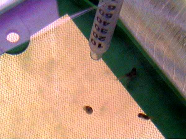 Esto es una manera de poder administrar la artemia que le damos a los alevines , de manera que salga poco a poco y durante 1/2 hora o 3/4, sin necesidad de estar pendiente , ni esparcir toda la artemia por el acuario , sin ningun tipo de control. Se trata de usar jeringuillas, segun se tenga que administrar mas cantidad de artemia o menos, usaremos los diferentes tipos de jeringuillas que hay en el mercado, insulina, de 5ml, de 60ml....... En mi caso uso de insulina, porque solo tengo estos 4 discos (de momento) entoces necesito poca cantidad de artemia y me viene muy bien para no llenar en exceso de artemias muertas el acuario, y asi contaminar menos el agua. Con este metodo se puede administrar para que coman bien y no se desperdicie lo demas, ademas de poderla distribuir por la parte del acuario que queramos, tan solo hay que prolongar el embolo de la jeringuilla con un trocito de tubo rigido de 4mm, a la medida que nosotros queramos . Una vez tenemos la artemia, la enjuagamos bien , para que pierdan la salinidad, con 10-15 segundos bajo un hilo de agua en el grifo, nos bastara. La cogemos entonces con la jeringuilla. Ponemos la jeringuilla cerca de donde esten los alevines, o donde queramos y la dejamos, al poco tiempo las artemias iran saliendo poco a poco , nadando lentamente y los alevines pueden ir comiendolas, asi no se esperace por todo el acuario sin control. Como las artemias duran unas dos horas en agua dulce , tendremos ese margen de tiempo , hasta que terminen de salir poco a poco. Si estamos en casa , cuando veamos que las barriguitas ya estan llenas, pues sacamos la jeringuilla y al rato podemos administrar otra vez , si es que quedan, si no pues ya sabemos , a preparar otra dosis........ :) Si tenemos 100 alevines p.e , podemos poner dos jeringuillas de 60ml de las grandes, a cada lado del acuario, para admisnistrar sin pegas a todos. |